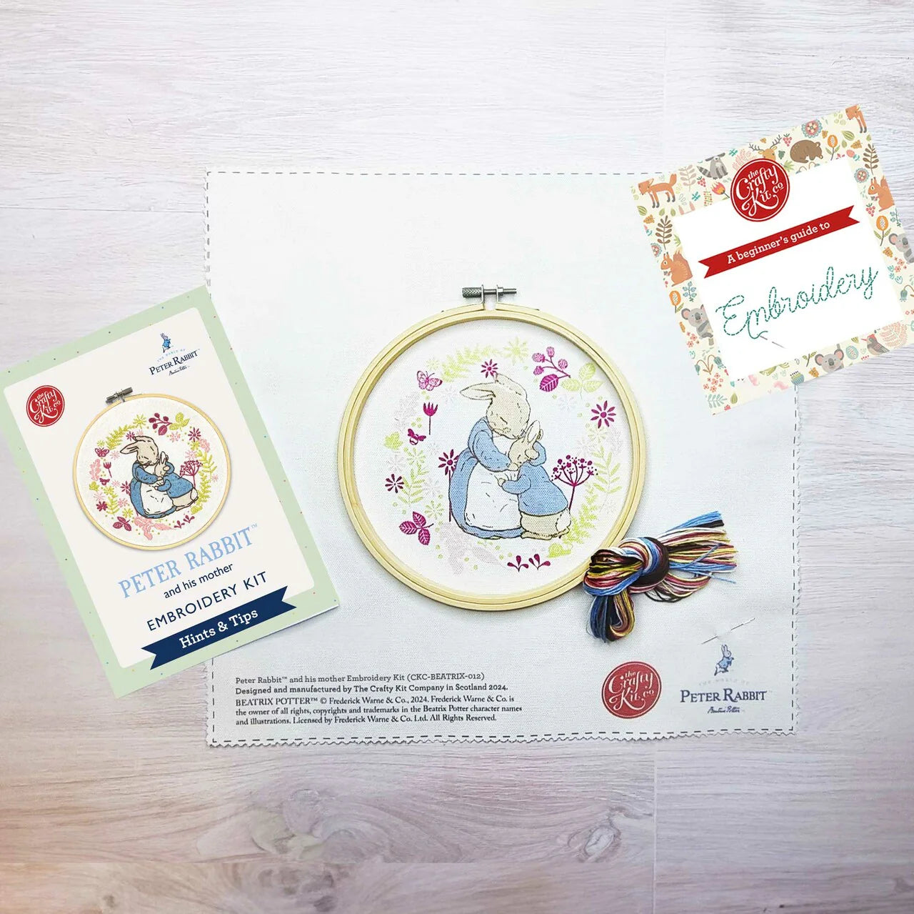 Celebrate the enduring magic of Beatrix Potter’s stories with The Crafty Kit Company’s Peter Rabbit & His Mother Embroidery Kit. This heartwarming design captures the gentle bond between Peter Rabbit and his mother, making it an enjoyable project for both beginners and experienced embroiderers.