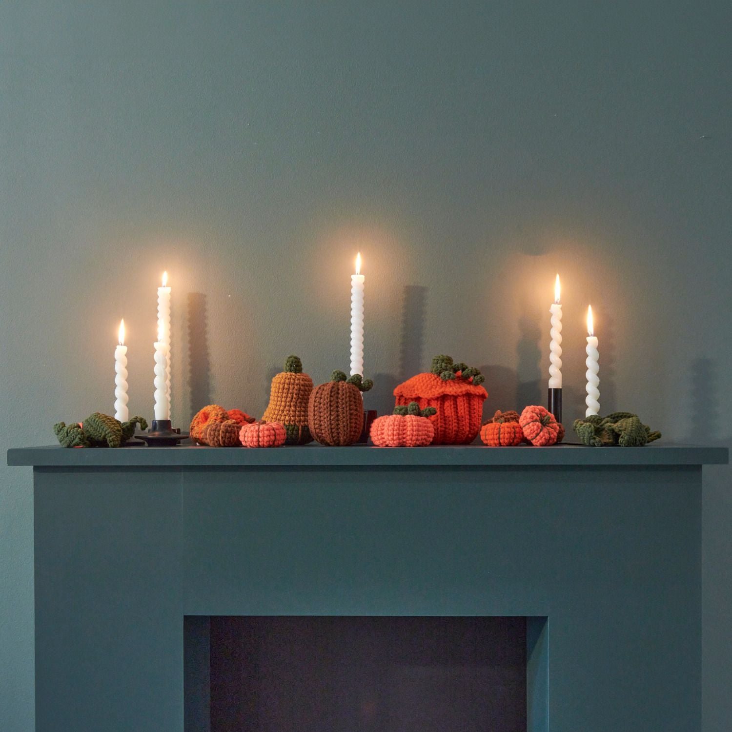 With this crochet set, you can crochet great pumpkins for an atmospheric autumn decoration. The limited edition box contains the yarns in harmonious autumn colours as well as the needles and instructions needed to create the various pumpkins. The yarn included is sufficient for all of the models shown: large pumpkins, small pumpkins, different pumpkin shapes and numerous