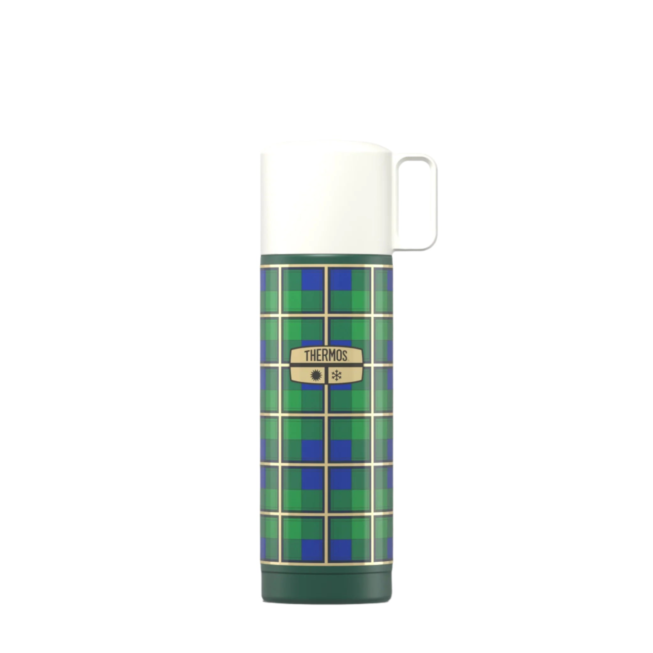 Introducing the Revival Flask - a replica of the classic Thermos Model 18 with modern upgrades. Keep your drinks hot or cold for hours with Thermos® vacuum insulation and a push button stopper for easy pouring. The durable stainless steel interior and exterior make this flask festival-ready and the iconic handled cup adds a touch of nostalgia. Available in three tartan color combos, the Revival Flask is perfect for the on-the-go lifestyle and comes with a 5 year guarantee.