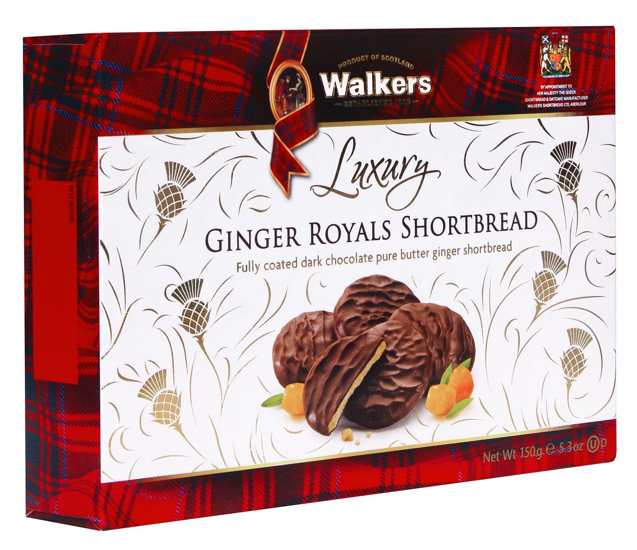Smothered in rich, smooth chocolate, these deliciously luxurious stem ginger biscuits are fit for Royalty. Our Luxury Ginger Royals are a unique shortbread, combining the moistness of real stem ginger with the crispness of Walker’s traditional pure butter shortbread and the irresistible taste of dark chocolate, resulting in a savoury symphony of delight that you simply must experience to appreciate. Like all Walker’s biscuits, these are best enjoyed in company. Make memories with the special people in your life - give a box of Ginger Royals and savor them together.