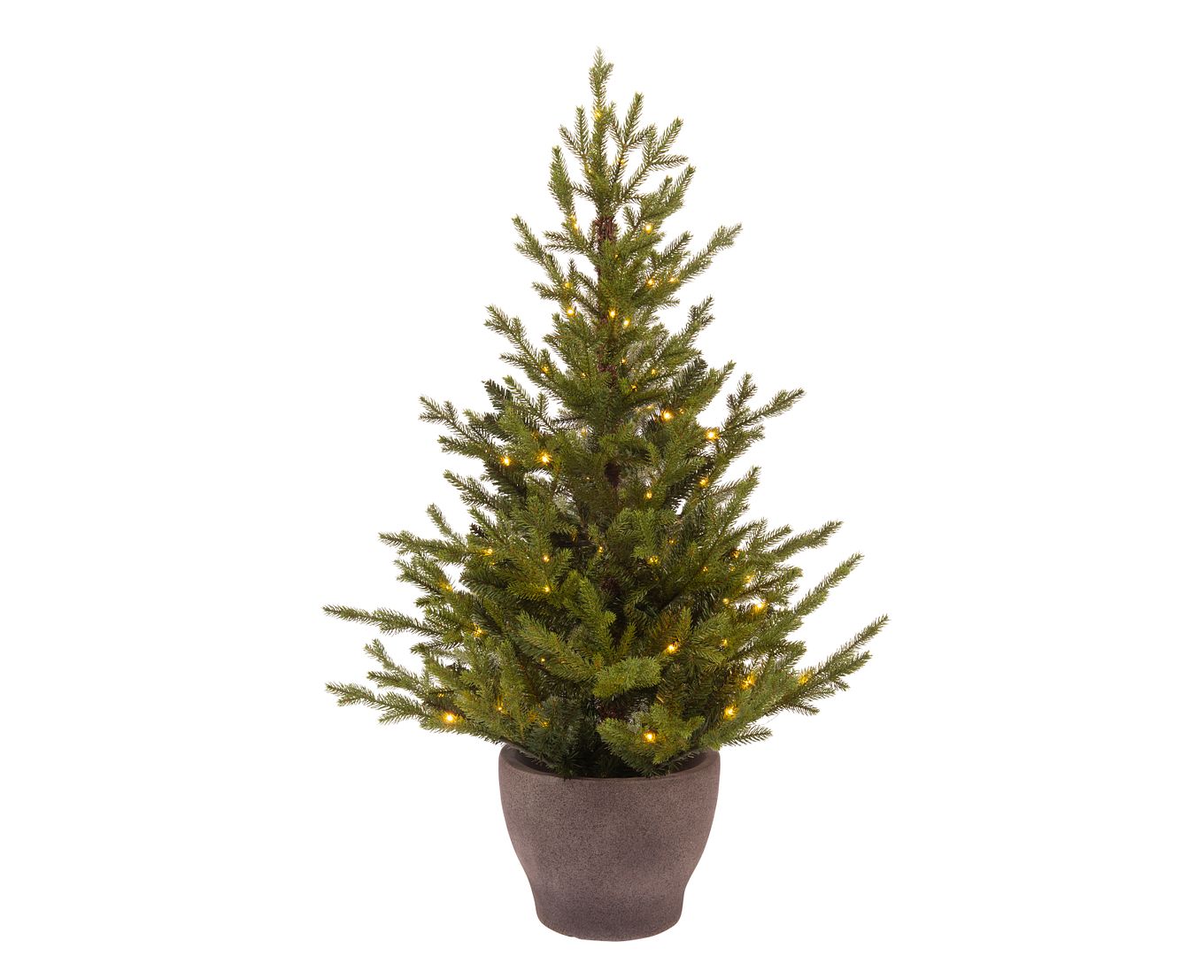 Everlands 120 cm Norway Pre-lit Potted Mini Christmas Tree This mini Christmas tree is perfect for bringing festive cheer to any location, indoors or outdoors. The Everlands 120 cm Norway Pre-lit Potted Mini Christmas Tree combines real needle and soft needle types, offering a natural look enhanced by its green hue. Crafted from a mix of PE and PVC materials, this tree stands stably in its 30 cm diameter pot, making it versatile for various settings. The tree features enchanting warm white micro big & bright LEDs, complemented by a green cable. With an 8-function twinkle effect, the tree offers dazzling lighting options and is powered by 3 AA batteries, allowing 32 hours of continued brilliance. A convenient 6-hour timer ensures hassle-free enjoyment. - Green PE/PVC tree with real and soft needles - Warm white LED lights with an 8-function twinkle effect - Suitable for indoor and outdoor use - Powered by 3 AA batteries (not included) - Includes a 30 cm diameter pot base Let this charming pre-lit tree brighten up the festive season!dia70cm x H.120cm