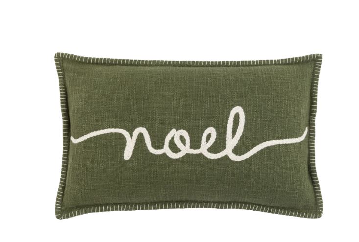 Ensure a Merry Noel with this luxe green velvet cushion embroidered with Noel detailing and finished off with a blanket stitch edge.