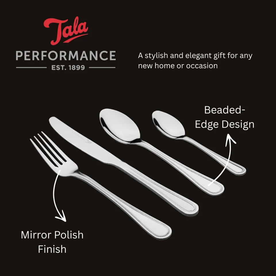 Bring timeless style and everyday durability to your table with the Tala Performance Beaded Stainless Steel Cutlery Set. This 16-piece set features a classic beaded design with a polished finish, perfect for both everyday meals and special occasions