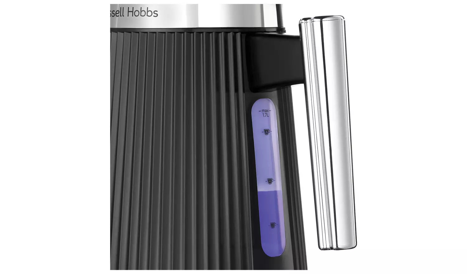 With its fluted matte black and chrome-accented exterior, the Russell Hobbs Bronte Kettle Matte Black is a stylish focal point for any worktop. The elegant internal illumination brings another touch of class to this eye-catching design. And it doesn't just look the business – it's reliable and practical, too. A perfect pour spout ensures a clean, direct flow with no messy drips. The push-to-open lid makes refilling a breeze and it's easy to settle back on its 360 degree base from any angle, whether you're left- or right-handed.