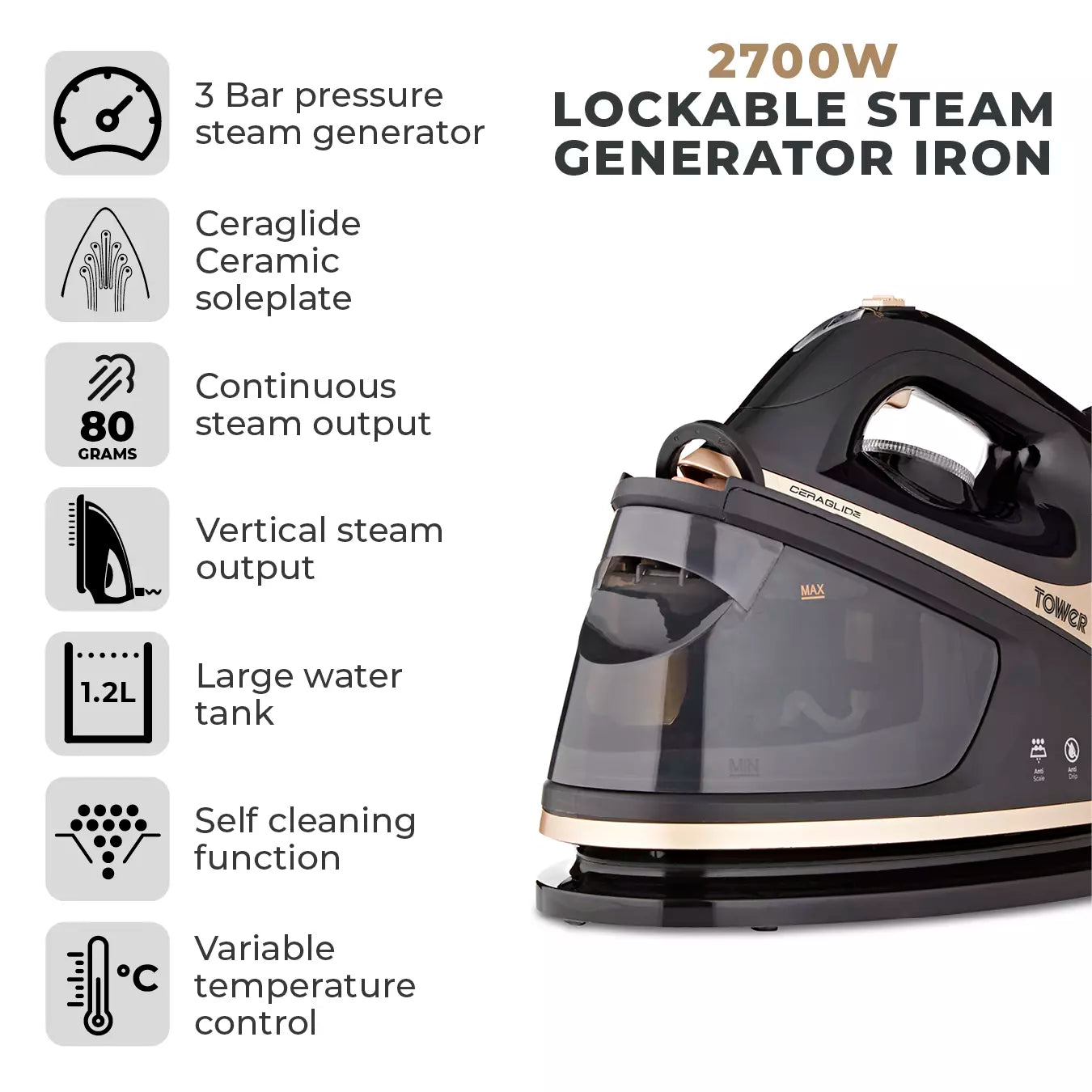 Ceraglide 2700W Lockable Steam Gen Iron