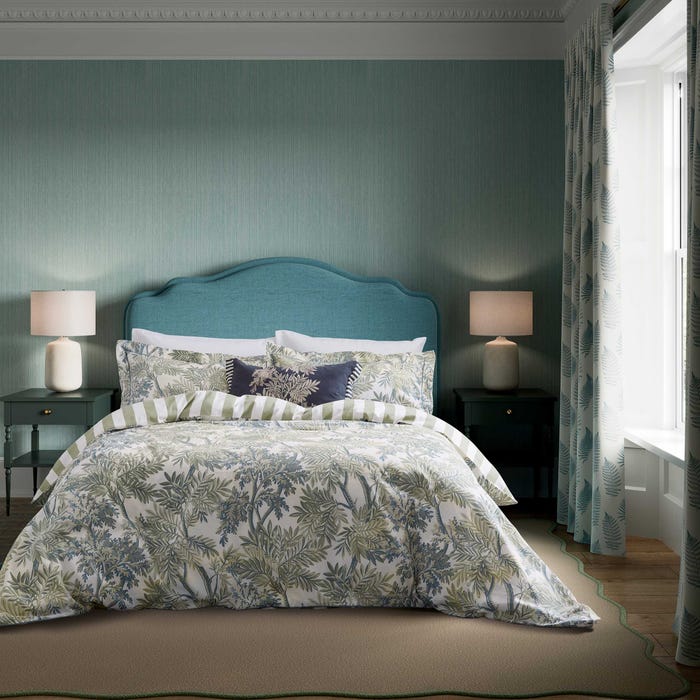 Inspired by an archival document, Tapestry Tree brings a gentle arboreal touch to bedding. Overlapping oak branches intertwine with other species, forming a graceful, natural serpentine stripe for an elegant and restful design. Available in four sizes of duvet cover set and printed on 200 thread count cotton sateen Single Duvet Includes 1 Single Pillowcase Double, King and Superking Size Duvet Includes Pair of Pillowcases
