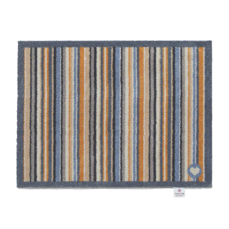 Introducing the Stripe 86 mat and runner for our Contemporary collection. Whether you choose our stripes, spots or checks these colourful contemporary designs will suit a variety of decors and interior styles. This design consists of vertical stripes in shades of grey, orange, blue and cream with a blue border. We're sure that you'll love this design in your home as much as we do in our own homes.