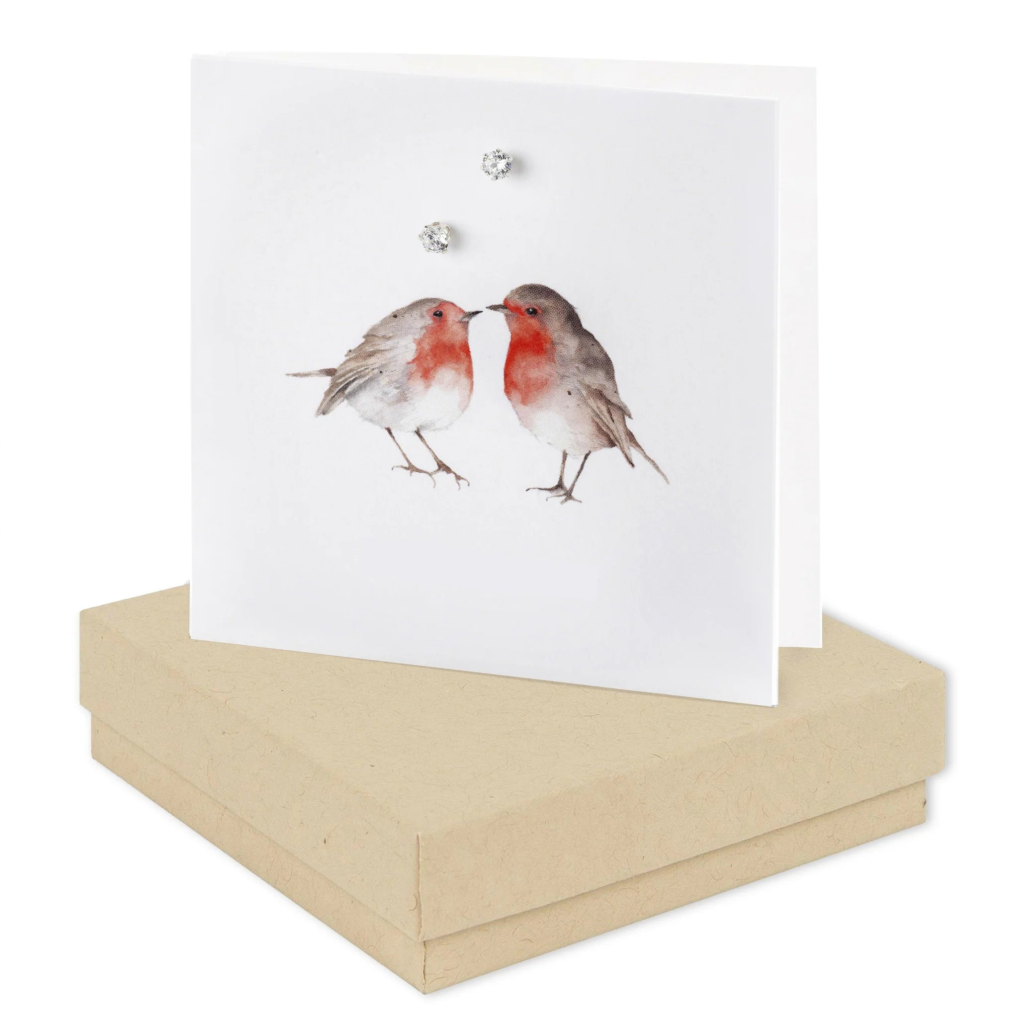 This elegantly designed Boxed Sterling Silver Stud Earring Card features a charming robin design and is ready for gifting. Measuring 85 x 85mm, this white greeting card is made with FSC Certified 350 gsm paper, milled here in the UK for a high-quality finish.