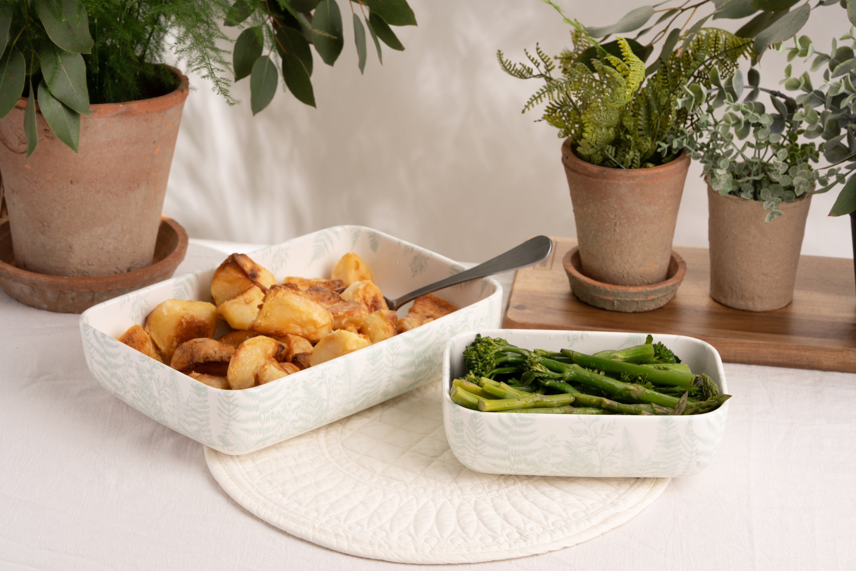The Mary Berry Signature Botanical Medium Roaster is ideal for cooking delicious pasta bakes, meat joints, roasted vegetables and so much more. Adorned with a fern and floral pattern, this medium roaster welcomes a country charm to your kitchen, inspiring hearty home cooking. Pair with other pieces from the Mary Berry Signature Botanical collection for a coordinated style in your kitchen and through your home.