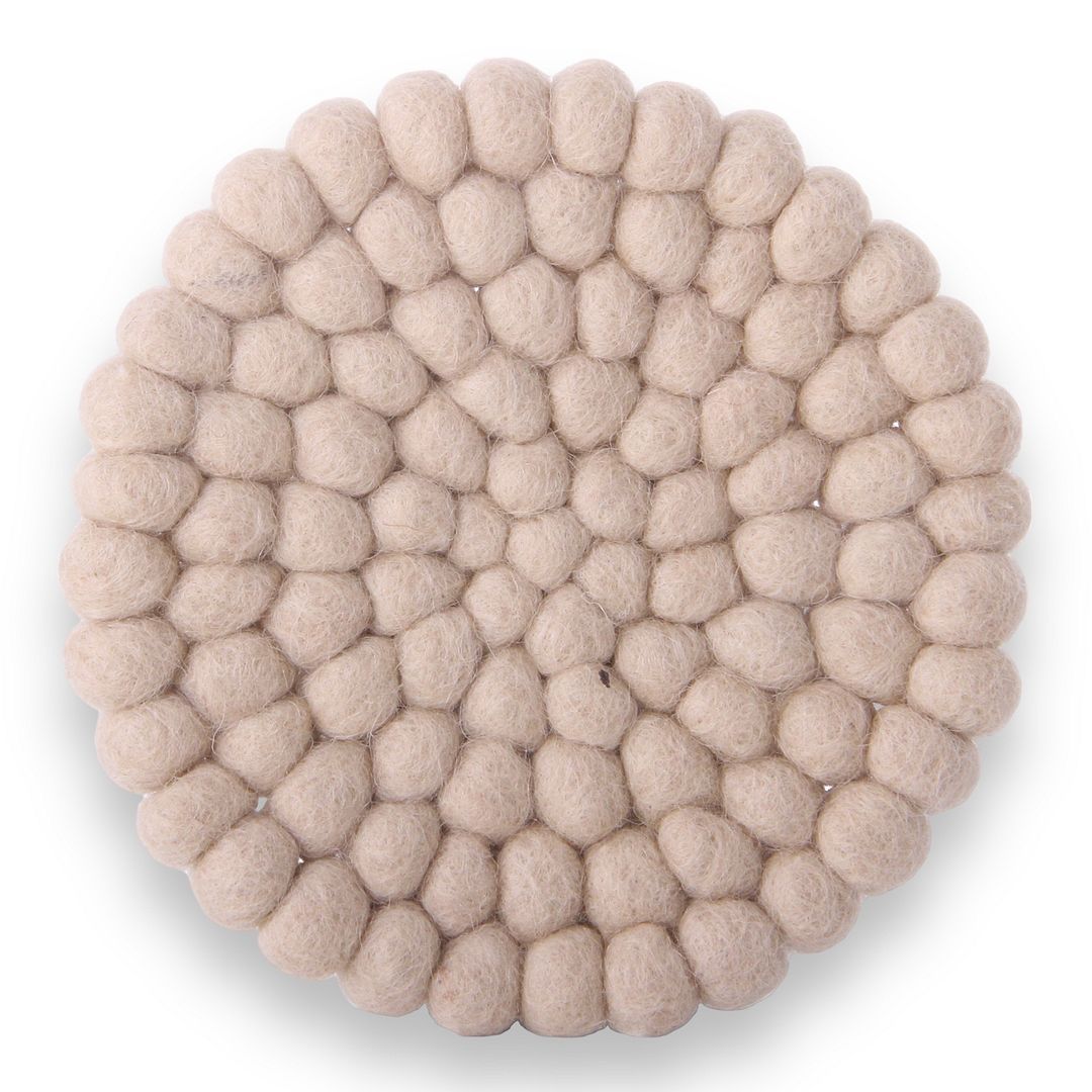 10cm Diameter. Set of 2 Felt Bobble Coasters. Gry & Sif is a Danish design, the collections are handmade in Nepal by very skilled workers. The product are "handmade unique" as there will always be small differences in each product. All products are made of pure natural wool from Zealand.