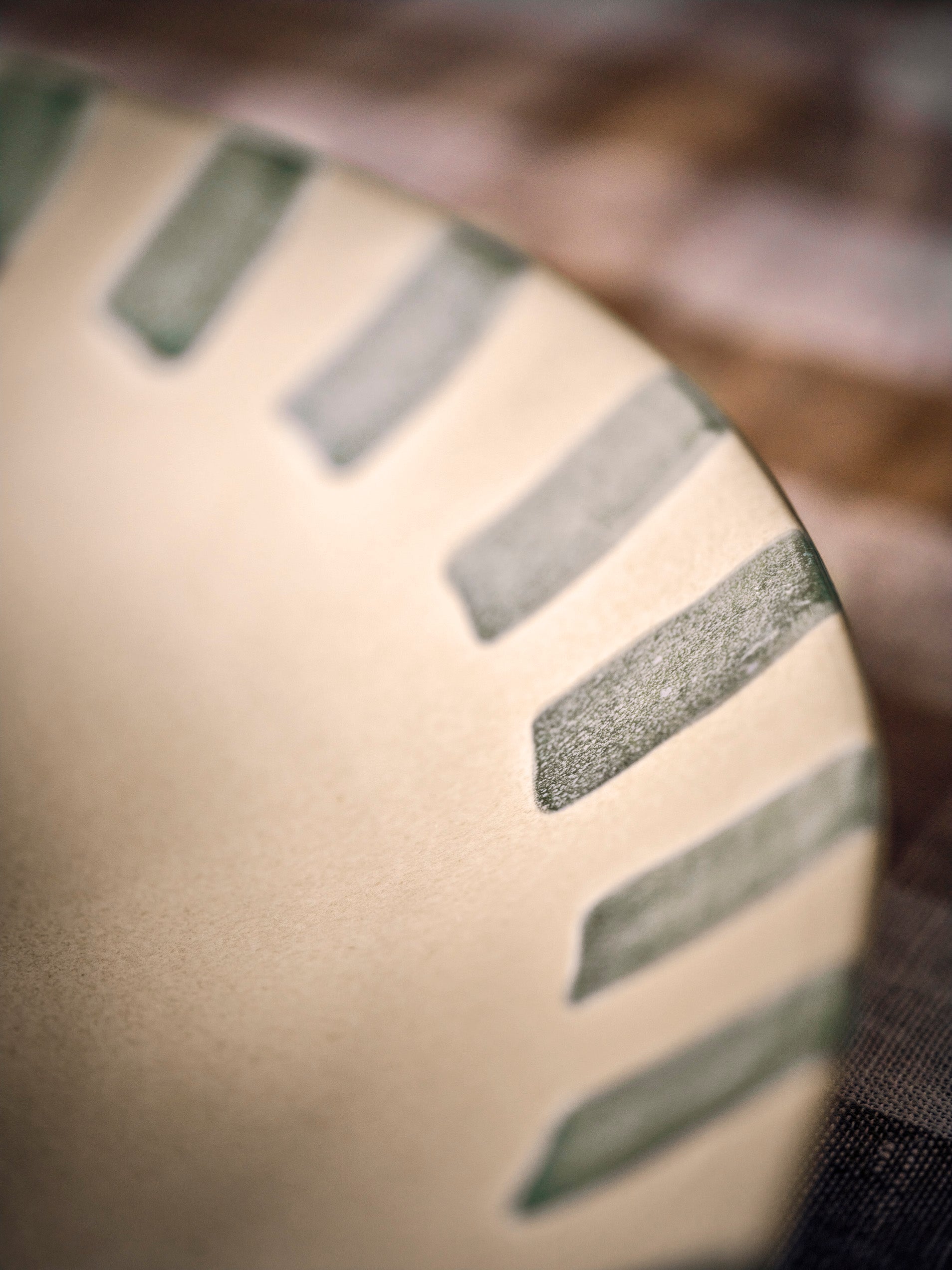 Whether it's piled high with vegetables or covered with cheese and charcuterie, our Cranwell Stripe Edge Serving Plate is a must for family meals and dinner parties alike. It's painted by hand with a fern green stripe, meaning each one is unique, but it's still safe to go in the dishwasher to keep cleaning simple. It'll go beautifully both with other pieces from our Cranwell Stripe Edge range, or with our Winderton Rosemary dinnerware to mix things up a bit.
