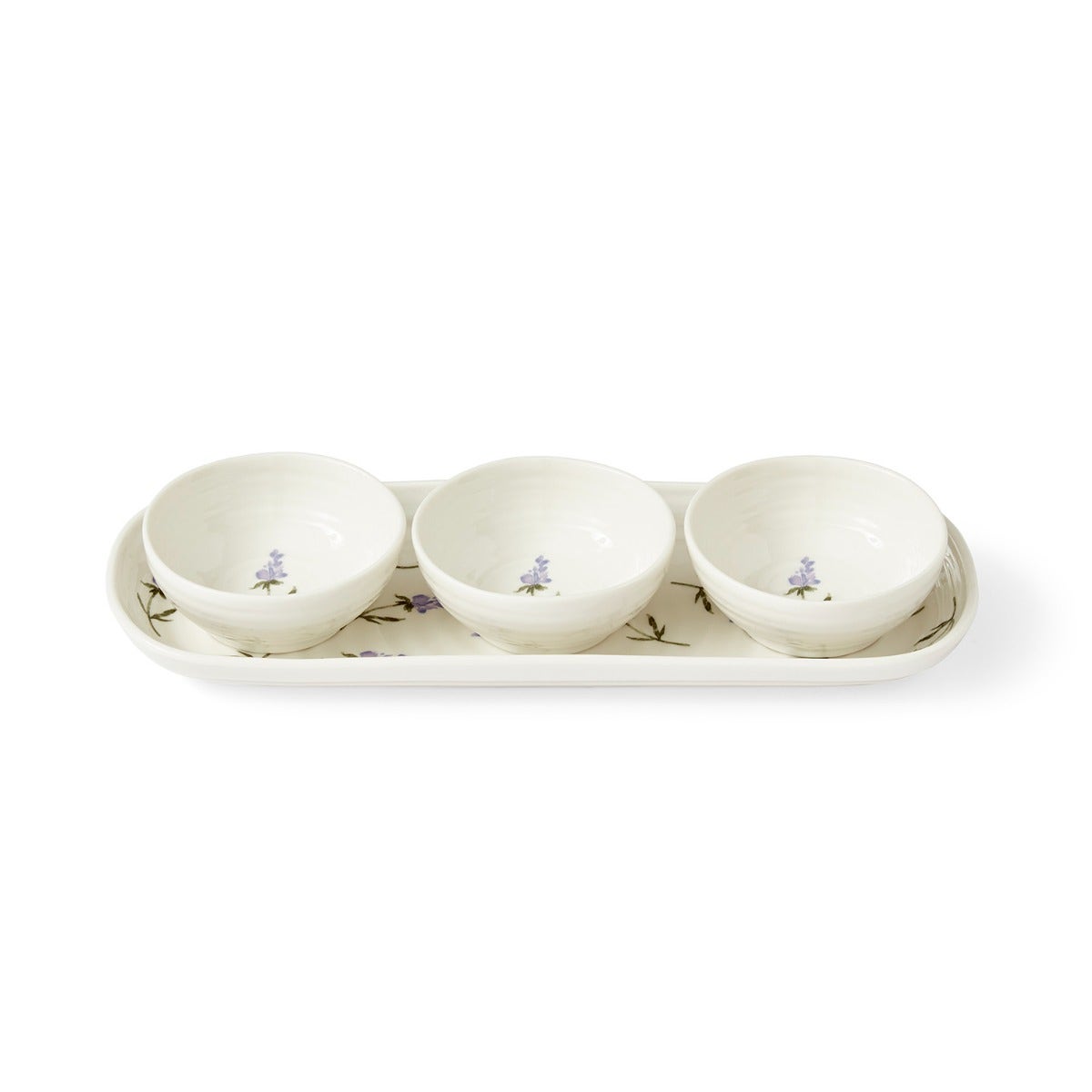 The perfect accompaniment to your entertaining, this bowl and tray set from Sophie Conran is perfect for serving dips, nuts and delicious treats at your next get-together. Featuring a delightful lavender design in subtle shades of purple and green set against crisp white porcelain, this set is both beautiful and practical. Packaged in a lovely purple gift box, treat someone who loves to host with this stunning set.