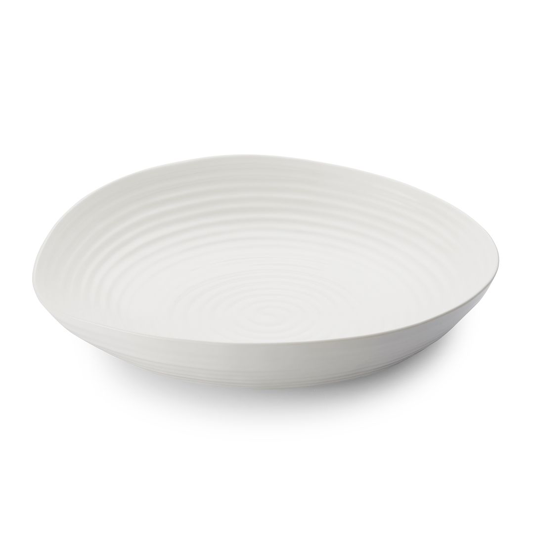 White Porcelain Large Statement Bowl Discover the perfect large white bowl for family lunches or as a decorative centerpiece. With an artisan look and feel, it's based on a hand-thrown design. Crafted from fine porcelain with Sophie Conran's signature ripple pattern, this versatile dish exudes elegance and durability. Use it as a stylish fruit bowl on your kitchen counter, accommodating apples, bananas, and even a couple of pineapples. The beautifully rippled design of Sophie’s White Porcelain Large Statement Bowl is wonderfully tactile with an organic, hand made feel.
