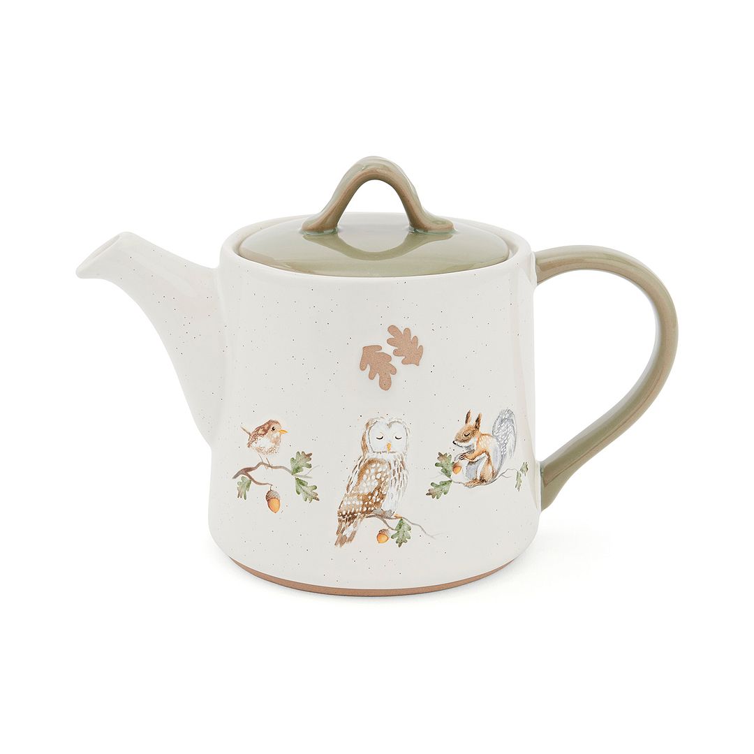 Tea Pot with full colour emboss decal speckle and unglazed base (leaf shaped handle)