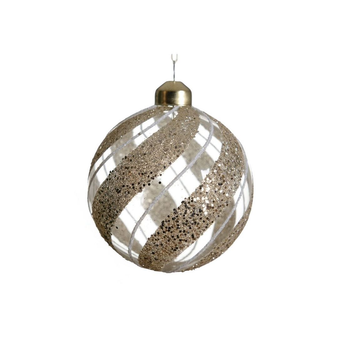 Decoris Decorated Glass Christmas Bauble Transparent Add a touch of elegance and sparkle to your Christmas tree with this stunning Decoris decorated glass Christmas bauble. Perfect for creating a festive atmosphere, this transparent bauble is beautifully decorated with gold glitter stripes that catch the light and bring a luxurious touch to your holiday decor. - Material: Crafted from high-quality glass - Diameter: 8 cm - Cap: Luxury metal cap in gold - Finishing: Transparent colour with exquisite decoration - Hanging: Easily hung with a chic champagne golden organza ribbon This machine-made bauble blends seamlessly with any Christmas theme, whether traditional or modern. It's easy to install, making it hassle-free to enhance your tree with style and grace. The unique design of the bauble ensures it stands out, creating a captivating holiday display. Transform your home into a winter wonderland with this elegant addition to your holiday decorations and enjoy the cheerful ambiance it creates.dia8cm
