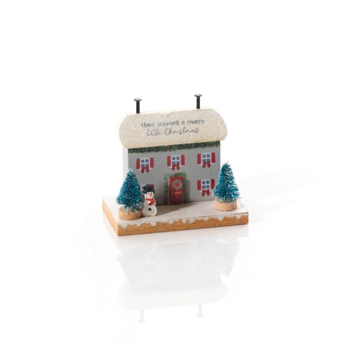 CHRISTMAS COTTAGE HAVE YOURSELF A MERRY CHRISTMAS WOOD HOUSE BLOCK WITH SNOWMAN AND TREES 10x6x9 cm