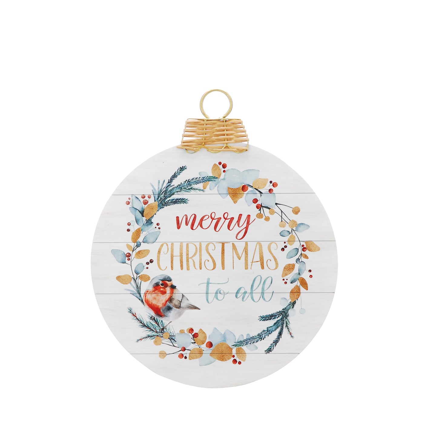 49cm MERRY CHRISTMAS TO ALL wooden sign with wicker detail robin design