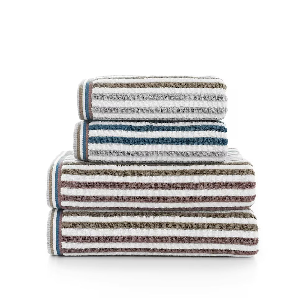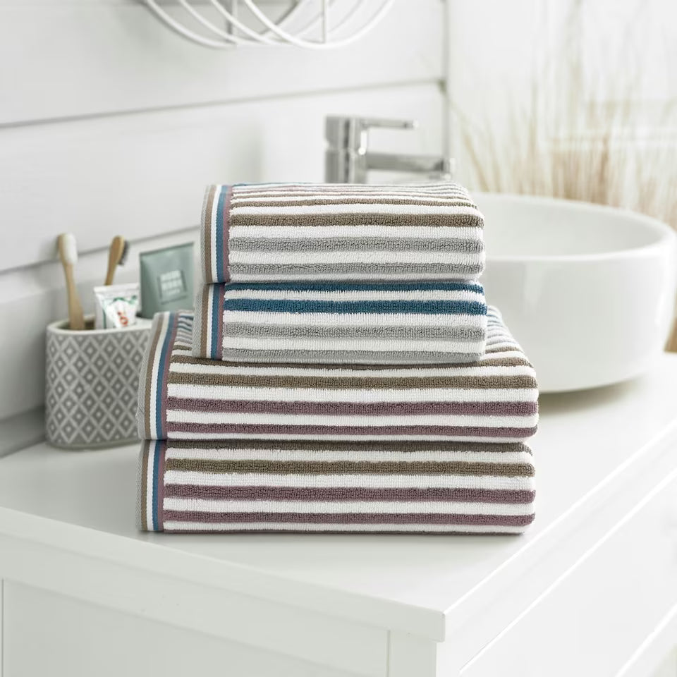 Brighten up your bathroom with the Hanover Stripe Cotton Towels by Deyongs. Featuring a fresh, modern textured stripe design in bold, stylish colour combinations, these towels add a pop of colour and elegance to your bathroom décor.