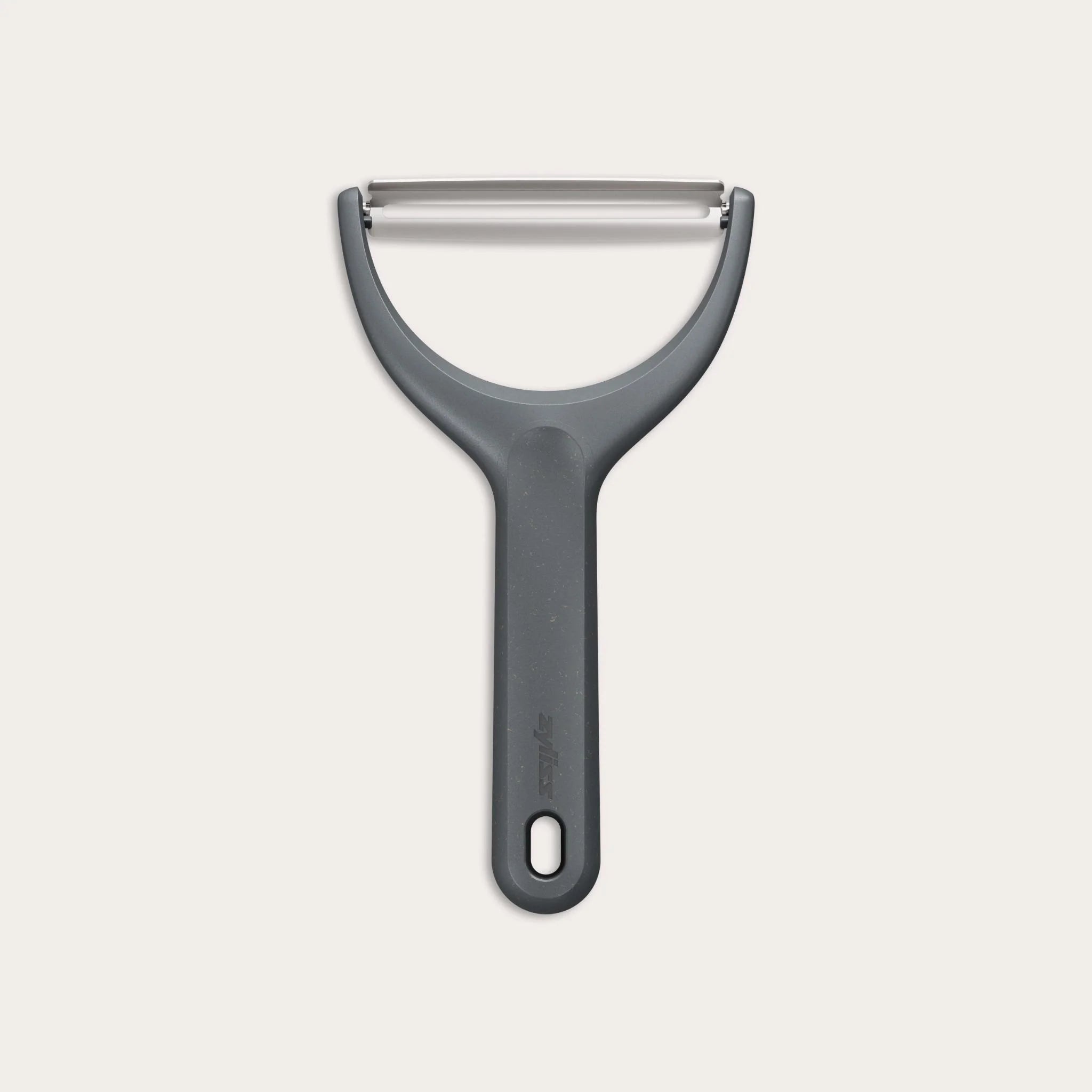 Wide peeler built for large produce with an easy grip and efficient cutting edge