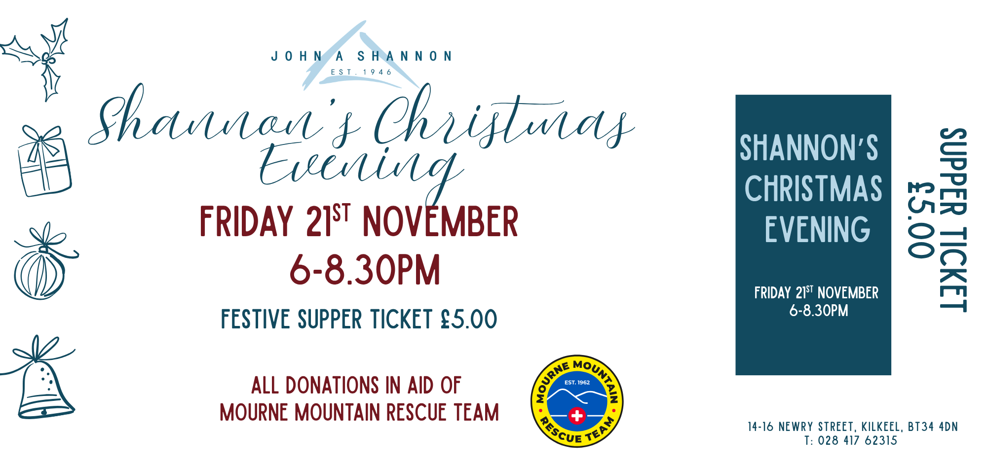 Join us on Friday 21st November for our festive supper Christmas Evening 6-8.30pm