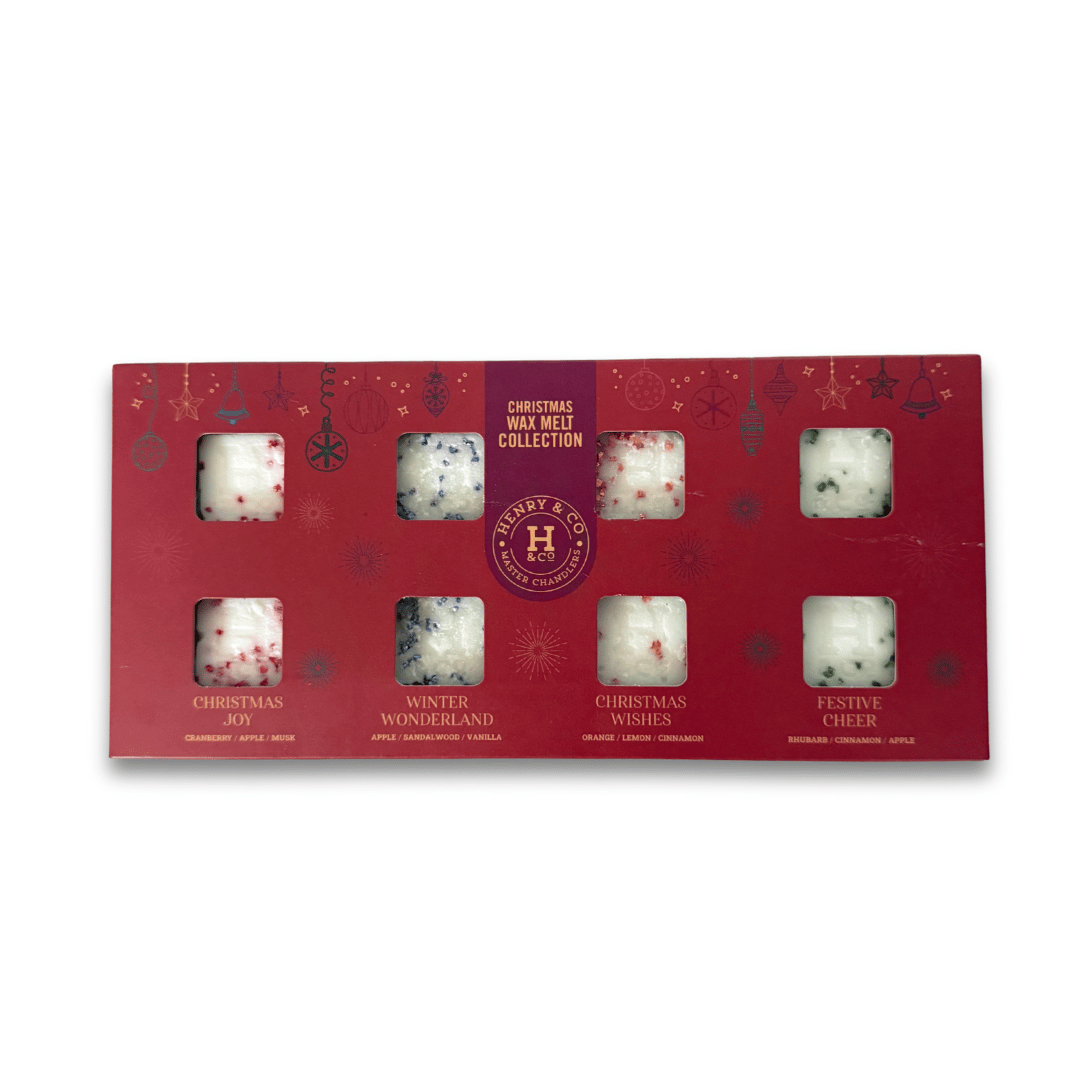 This Christmas Wax Melt Collection includes 8 hand-poured melts — featuring 2 of each festive fragrance: Christmas Joy, Winter Wonderland, Christmas Wishes, and Festive Cheer.