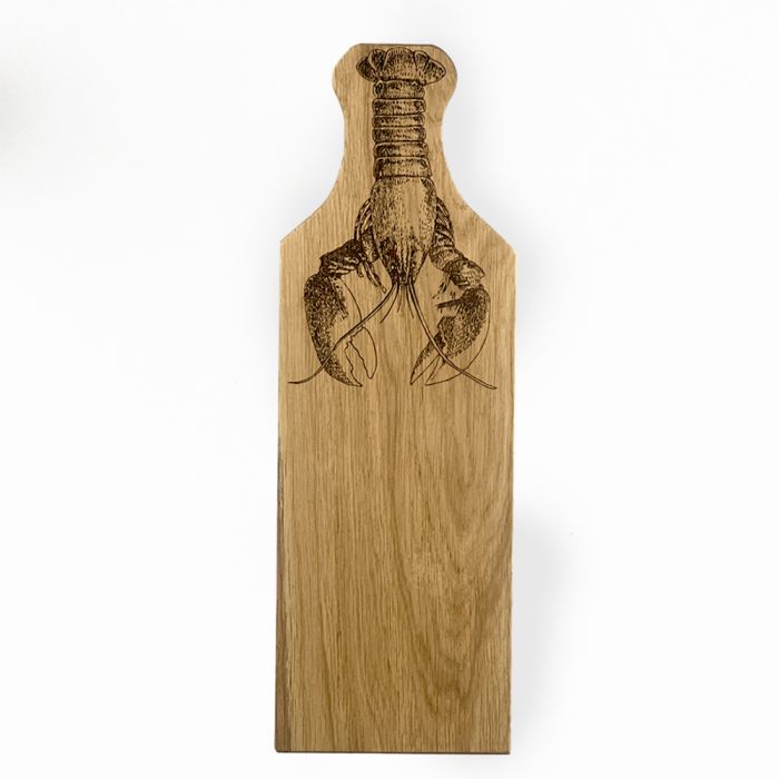 Add an extra dimension to your serving and entertaining experience with our expertly crafted lobster framed oak serving board. The top of the board is intricately designed in the shape of a Lobster and adorned with a striking engraved illustration, adding a touch of artistry to your culinary presentations.
